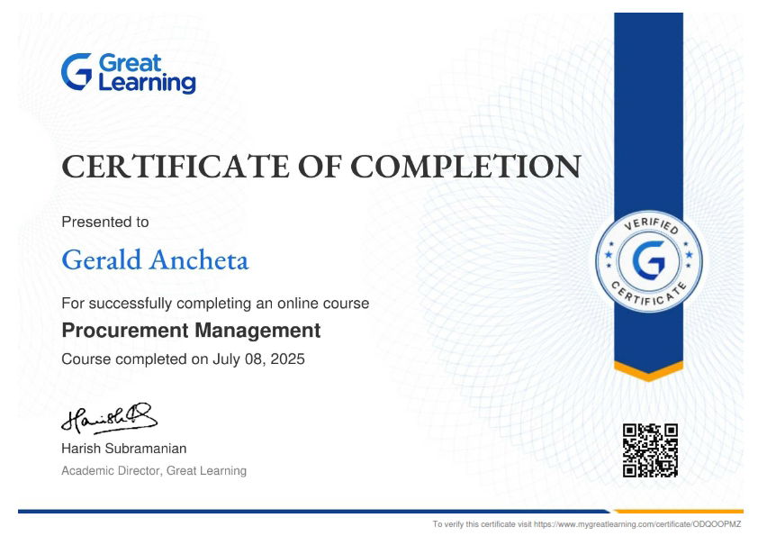 CERTIFICATE OF COMPLETION IN PROCUREMENT MANAGEMENT